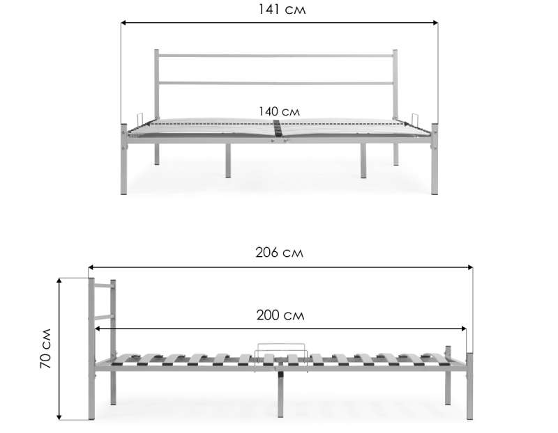 Длина кровати: 206 см.