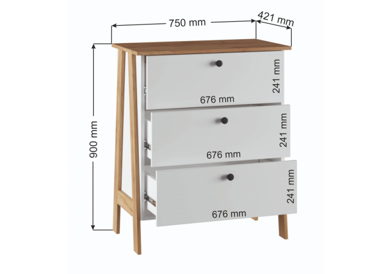 Комод Теодора белый / крафт золотой (75x42,1x90).
