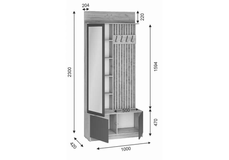 Прихожая Молд 1000 дуб крафт золотой / глянец белый (100x42x230).