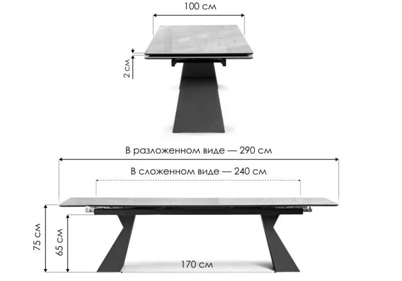 Керамический стол Денхольм 240(290)х100х75 rystal onyx bianco / черный (100x75)
