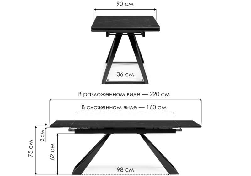 Керамический стол Геральд 160(220)х90х77 черный (90x75)