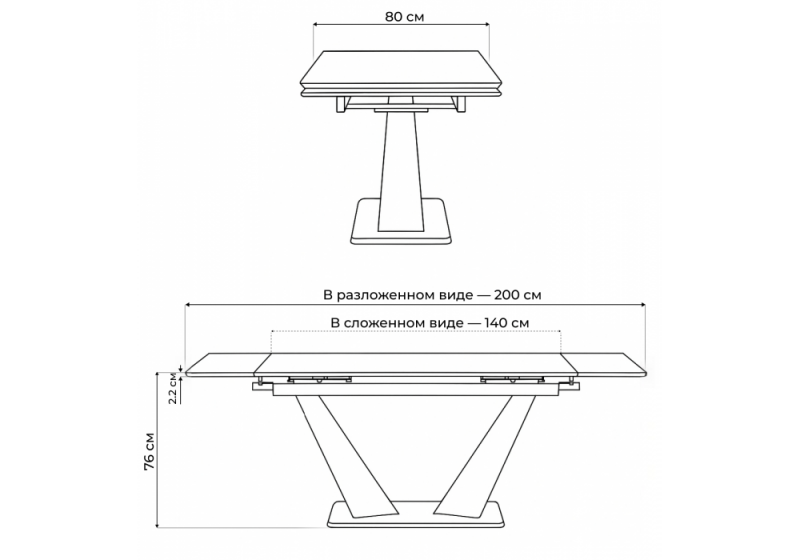 Керамический стол Кели 140(200)х80х76 белый (80x76)