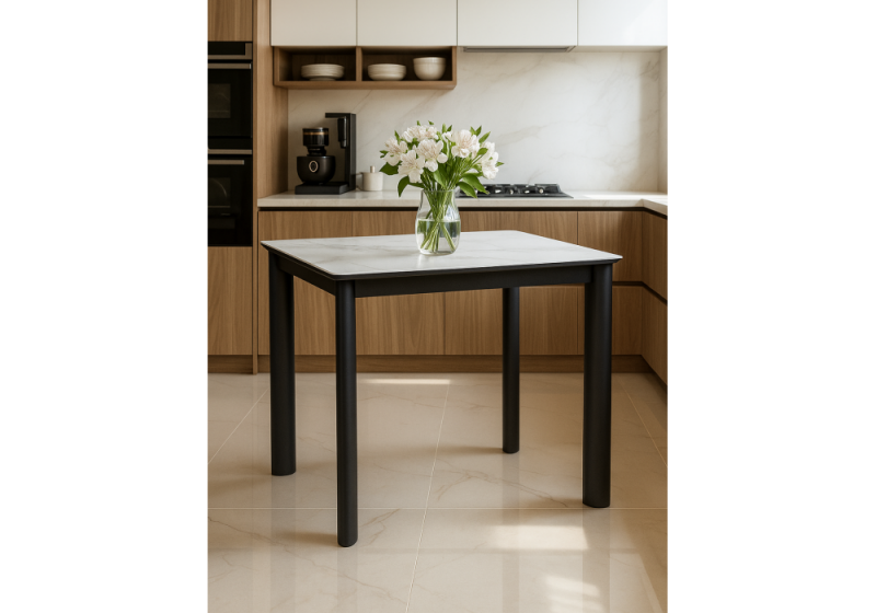 Керамический стол Кина 90(130)х65х76 alpine white / черный (65x76).