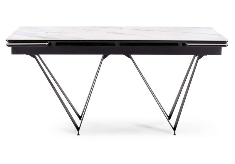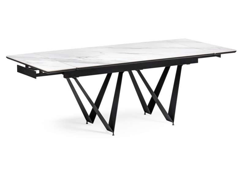 Керамический стол Марвин 160(220)х90х76 белый мрамор / черный (90x76)