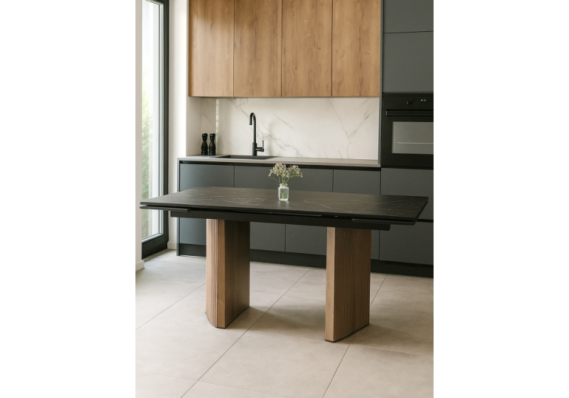 Керамический стол Монерон 180(240)x90 shakespeare black / орех кантри.