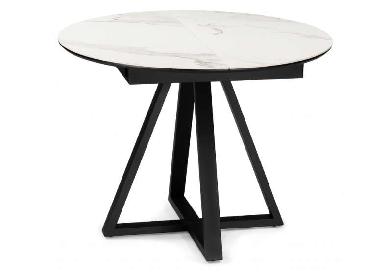 Керамический стол Нельсон 100(140)х100х76 alpine white / черный (100x76)