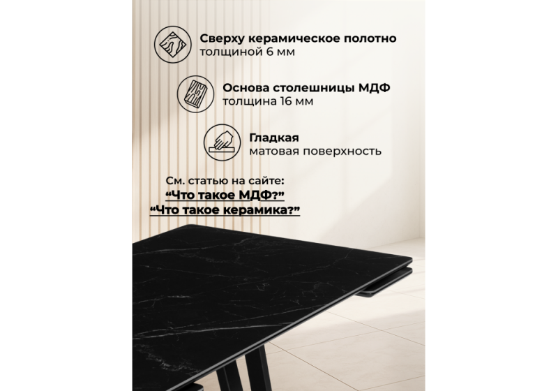 Керамический стол Памелла 120(180)х80 shakespeare black / черный (80x75)