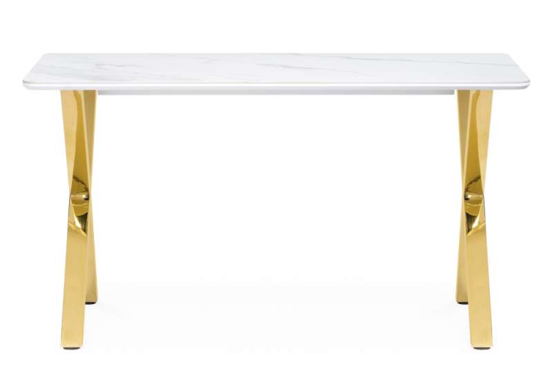 Керамический стол Селена 3 160х90х77 белый мрамор / золото (90x77)