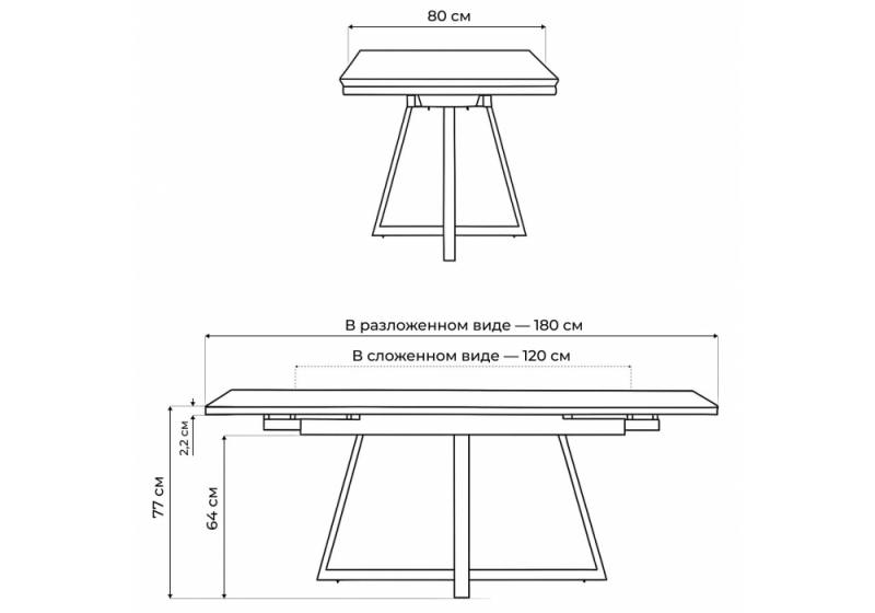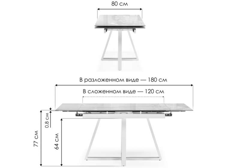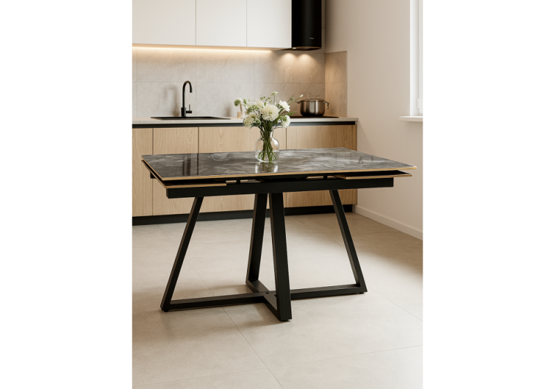 Керамический стол Силлем 120(180)х80 риальто серый темный / черный (80x77).