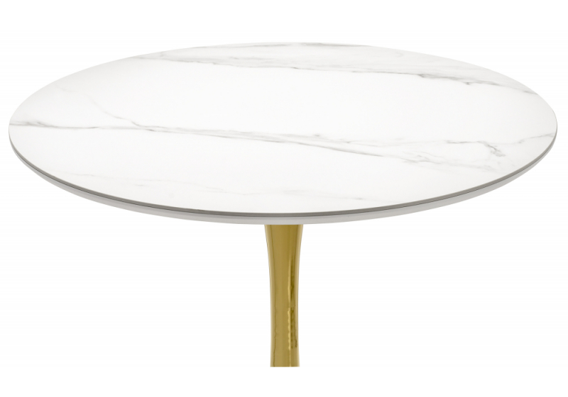 Керамический стол Тулип 90х73 белый мрамор / золото (90x74).