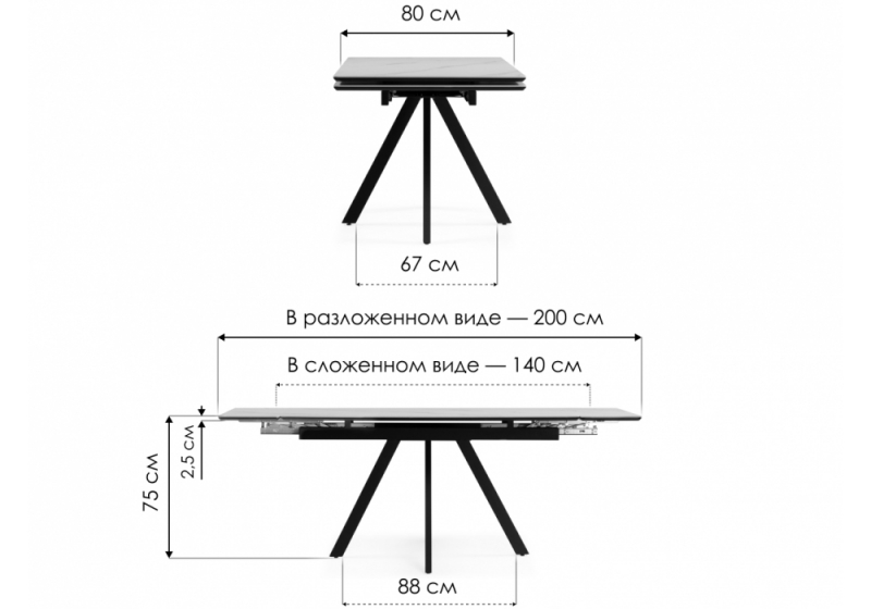 Керамический стол Вилли 140(200)х80х75 черный мрамор shakespeare black / черный (80x75).