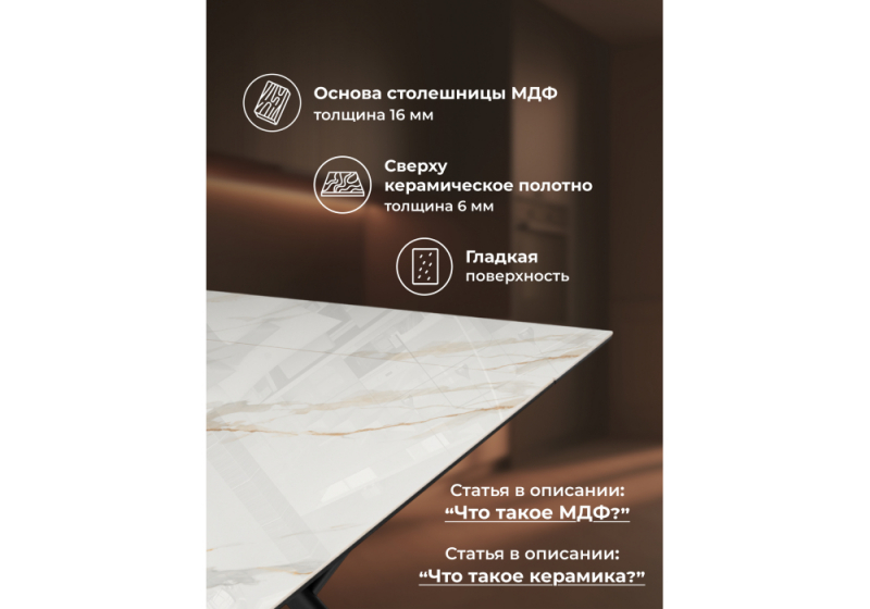 Керамический стол Ворен 180(240)x90 calacatta gold / черный (90x77)