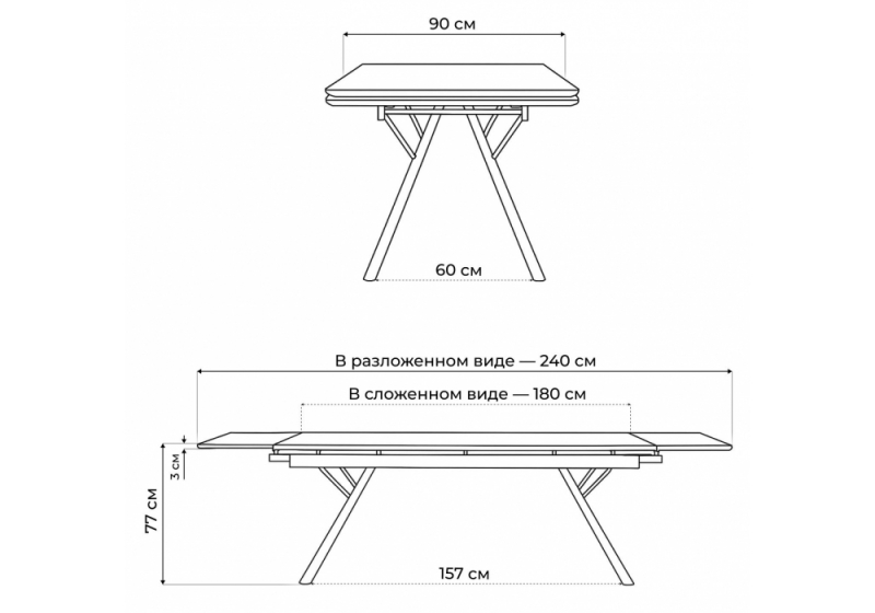 Керамический стол Ворен 180(240)x90 nero markina / черный