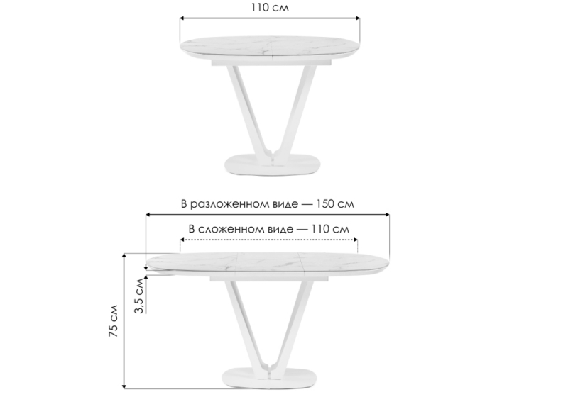 Столешница выполнена из керамики. Толщина столешницы: 3,5 см.
