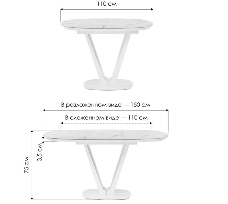 Столешница выполнена из керамики. Толщина столешницы: 3,5 см.