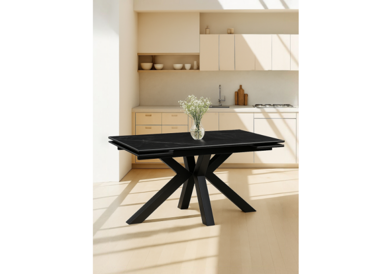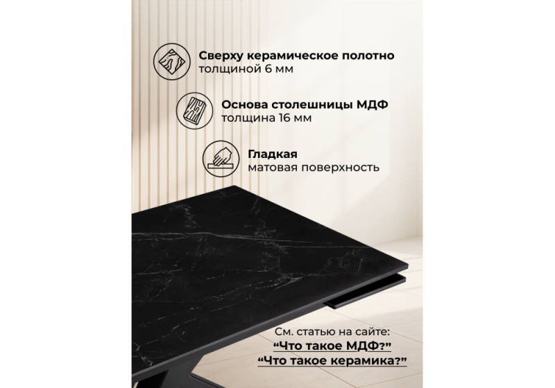 Керамический стол Бронхольм 140(200)х80х77 черный мрамор / черный (80x77).