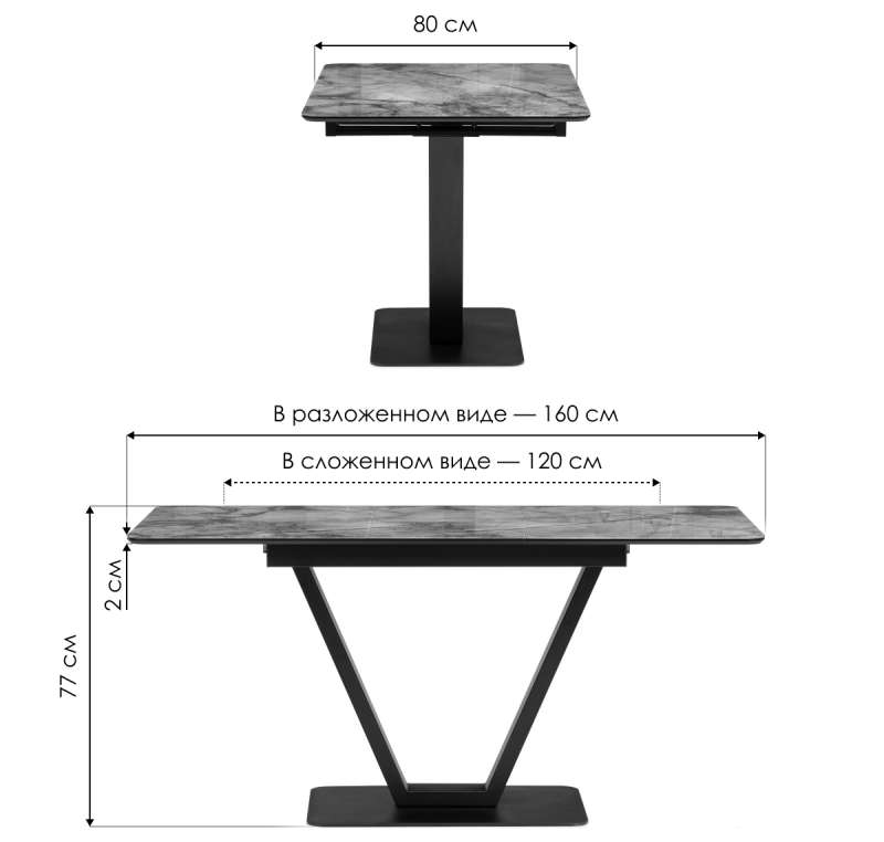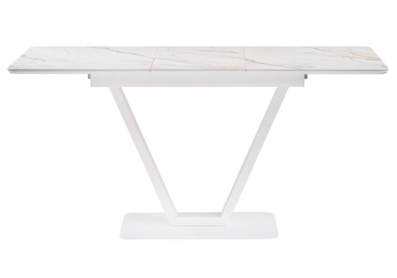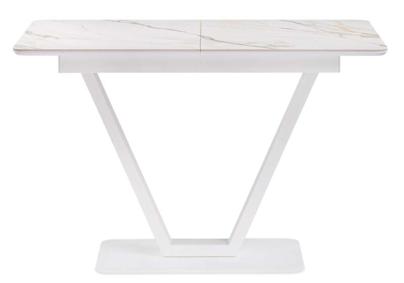 Керамический стол на тумбе Бугун 120(160)х80х77 белый мрамор с прожилками / белый (80x77).