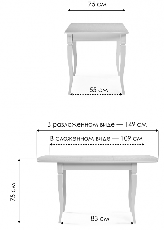 Стол деревянный Арктоис 109(149)х75х75 слоновая кость (75x75).
