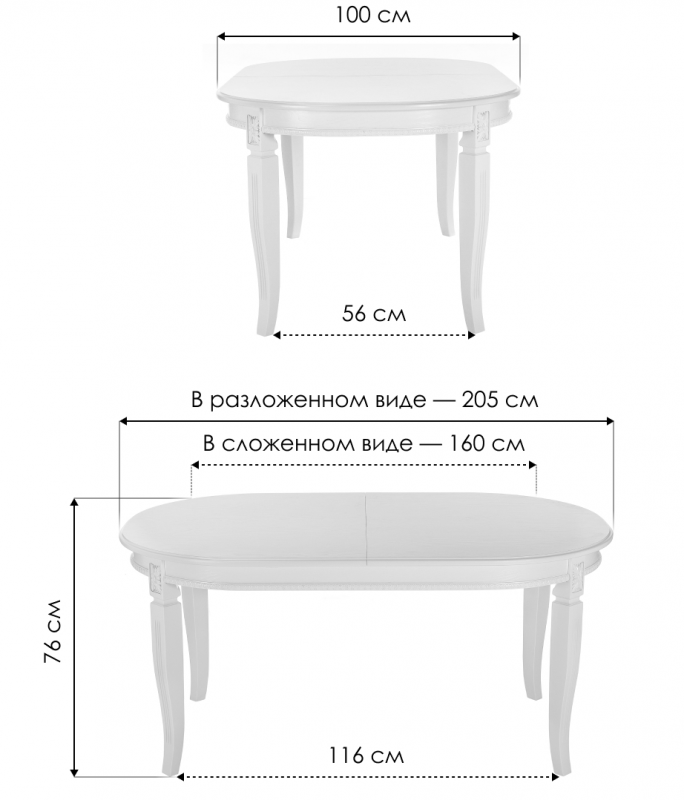 Стол деревянный Aviano 160(205)х100х76 молочный с патиной (100x76).