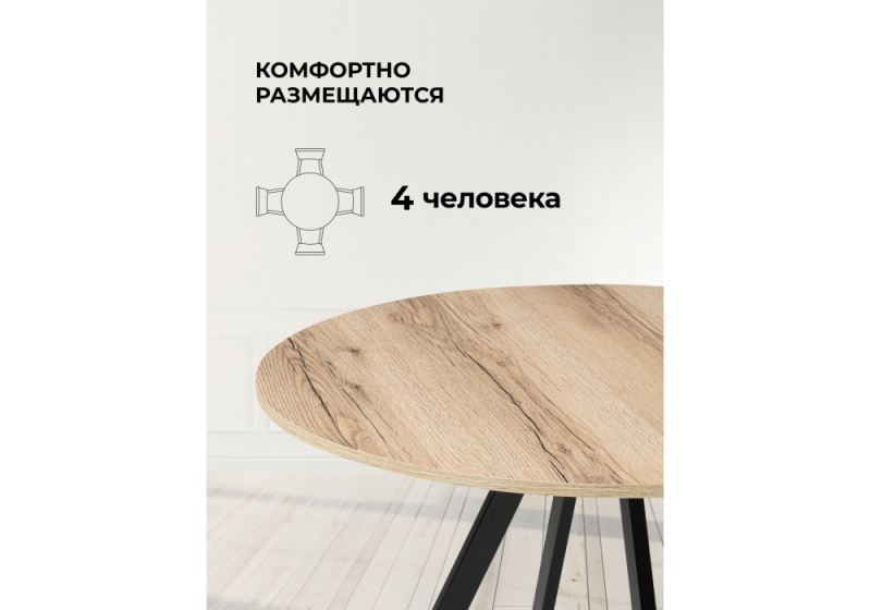 Стол деревянный Баргел 90х90х75 дуб делано / черный (90x75).