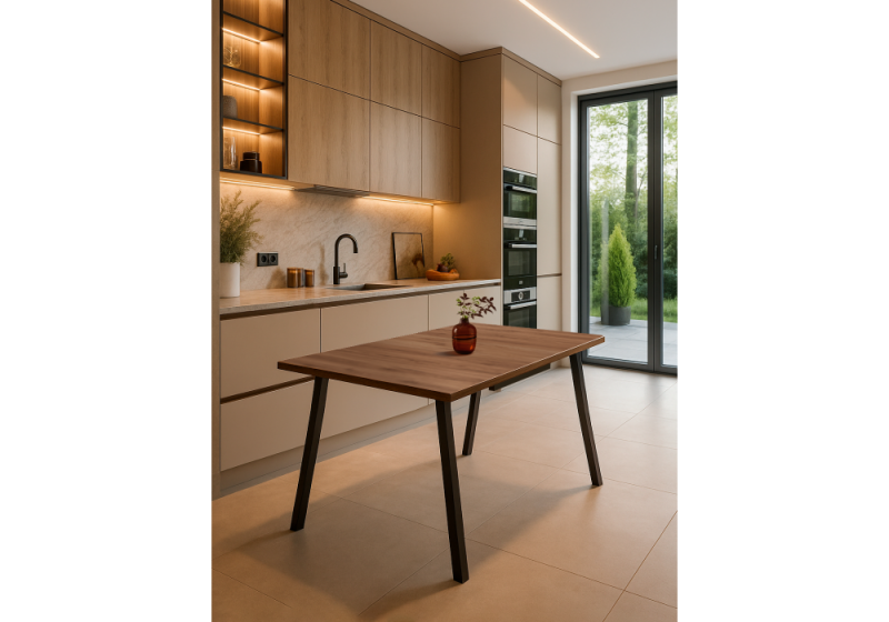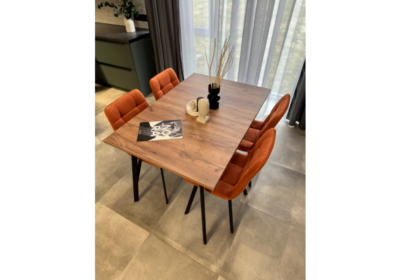 Стол деревянный Кортни 117 (157) x 77 дуб крафт табачный / черный матовый (77x75).