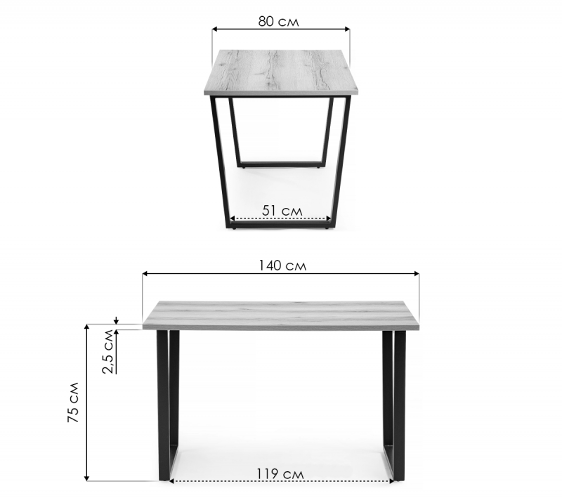 Стол деревянный Лота Лофт 140 25 мм юта / черный матовый (80x75).