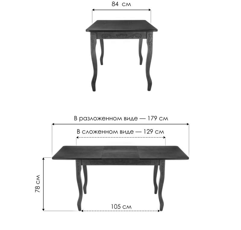 Длина стола в разложенном виде: 179 см.