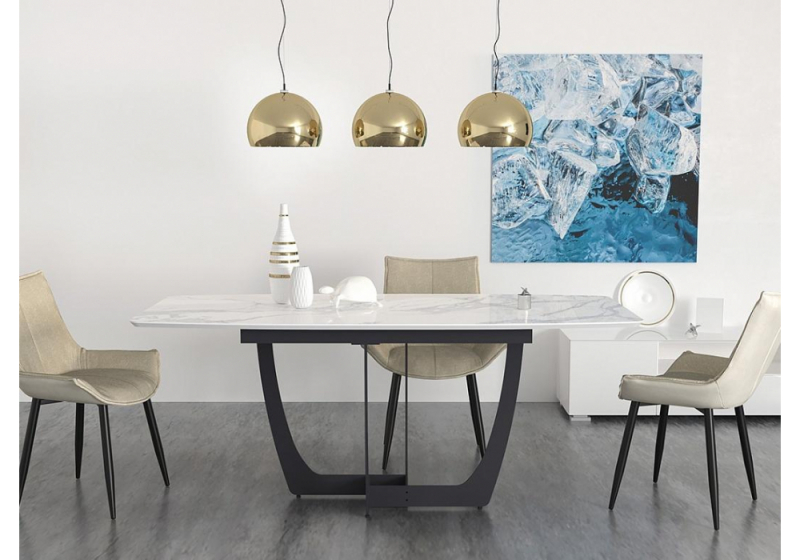 Стол деревянный Миссандея белый мрамор / графит (85x76).