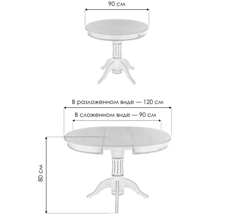 Стол деревянный Павия 90(120)х90х80 белый (90x80).