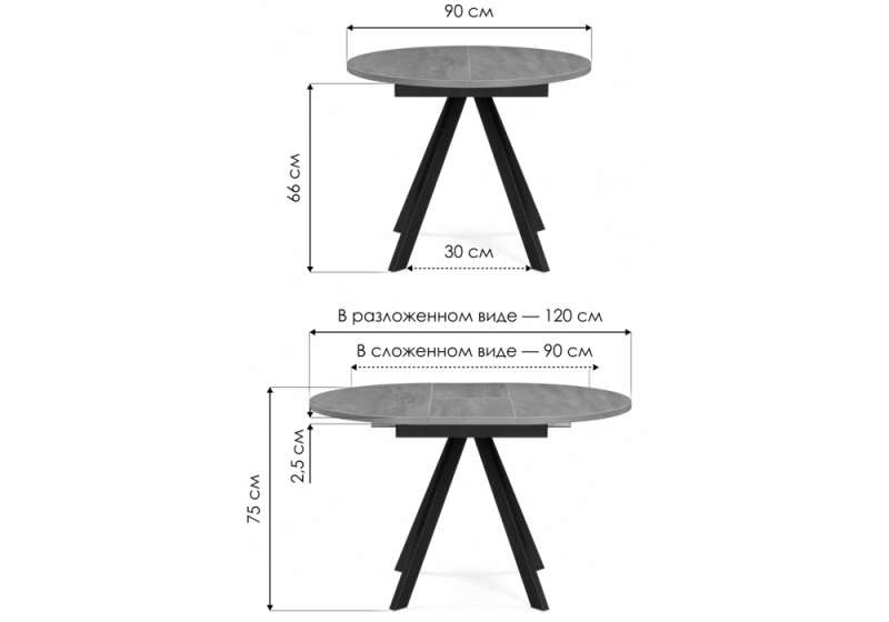 Толщина столешницы: 2,5 см. Расстояние между ножками: 30 см.