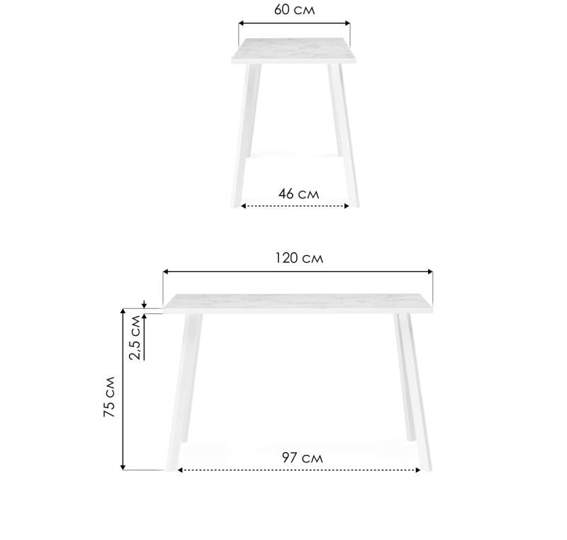 Стол деревянный Тринити Лофт 120х60 белый матовый / бетон (60x75).