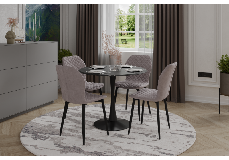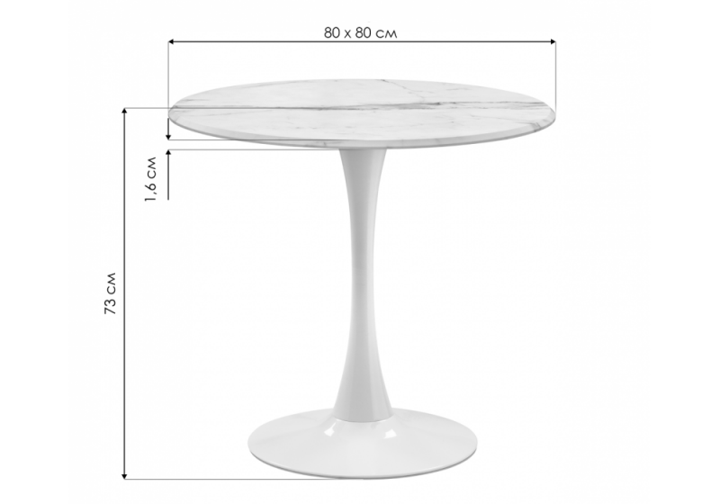 Стол деревянный Тулип 80х73 мрамор черный / черный (80x73).