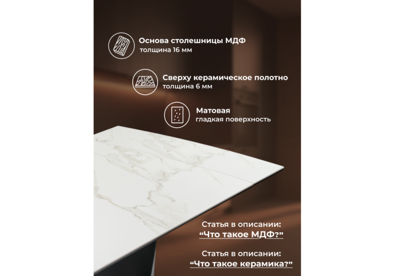 Керамический стол Готланд 160(220)х90х79 белый мрамор / черный (90x79).