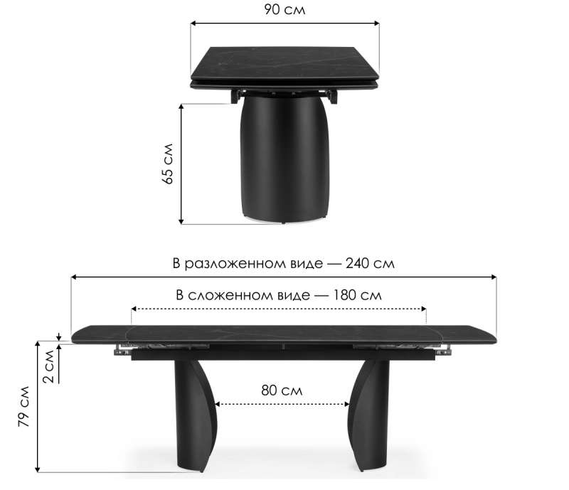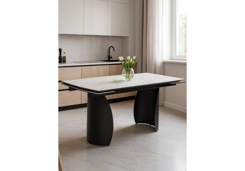 Керамический стол Готланд 180(240)х90х79 белый мрамор / черный (90x79)