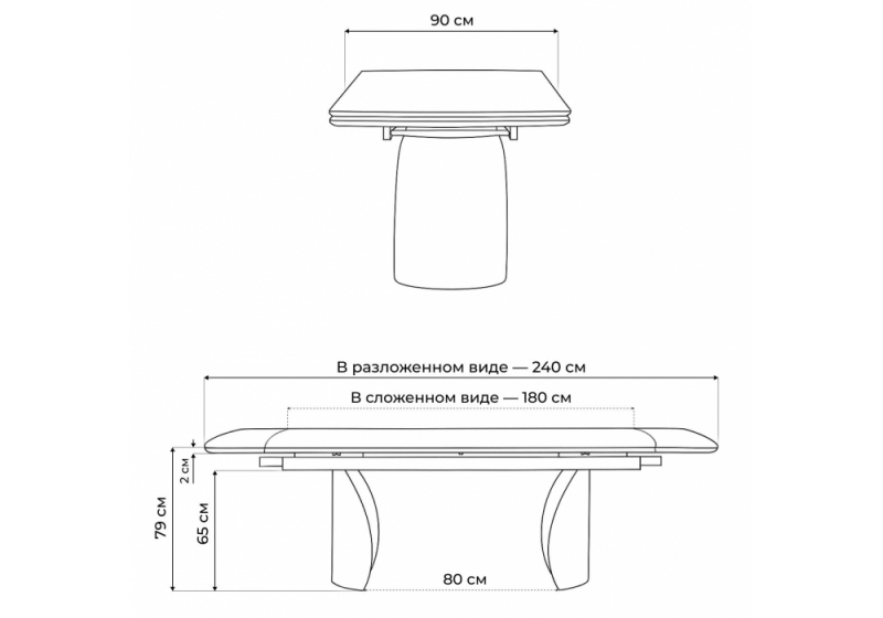 Расстояние между ножками: 80 см. Толщина столешницы: 2 см.