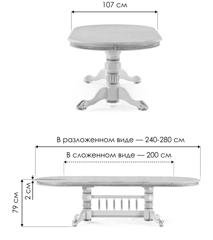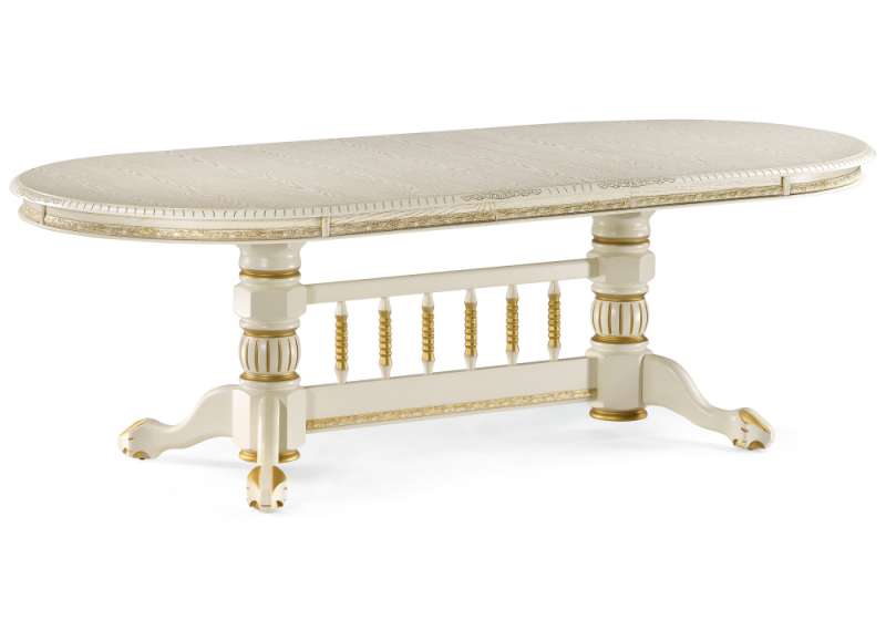 Обеденный стол Кантри 200(280)х107х79 слоновая кость / патина золото (107x79).