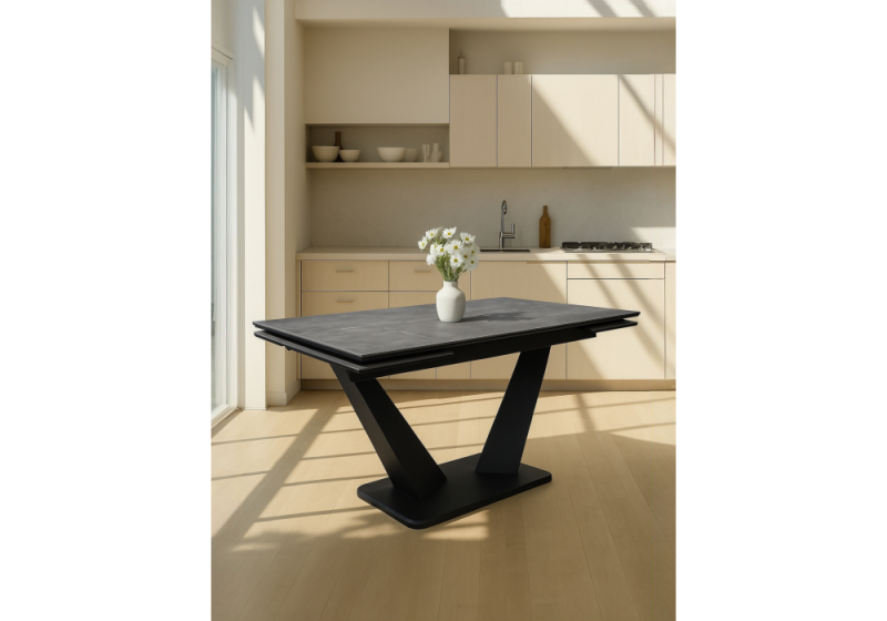 Керамический стол Кели 140(200)х80х76 серый мрамор / черный (80x76).