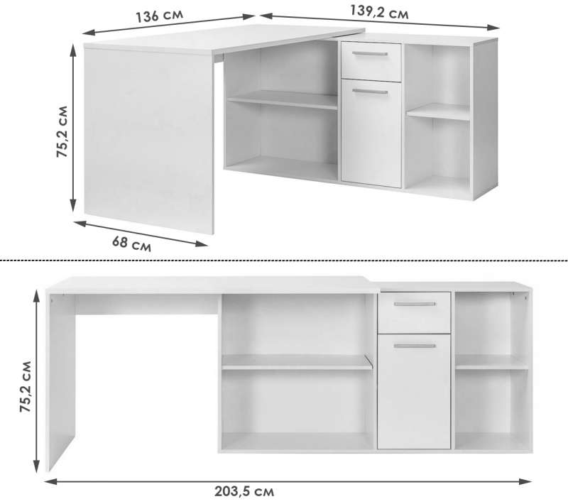 Компьютерный стол Лайт 03.245F белый гладкий 101 (75,2).