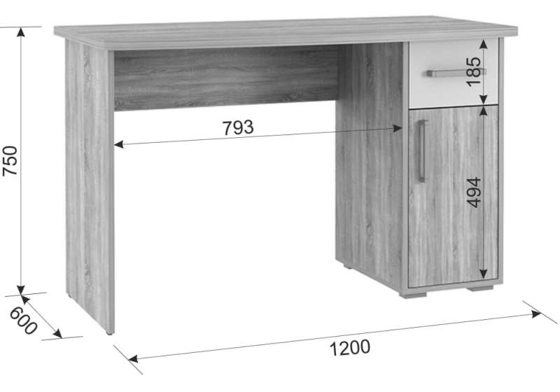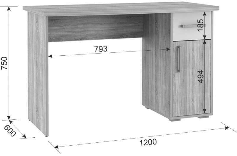 Компьютерный стол Лайт-1 120х60х75 см дуб сонома / белый (60x75)