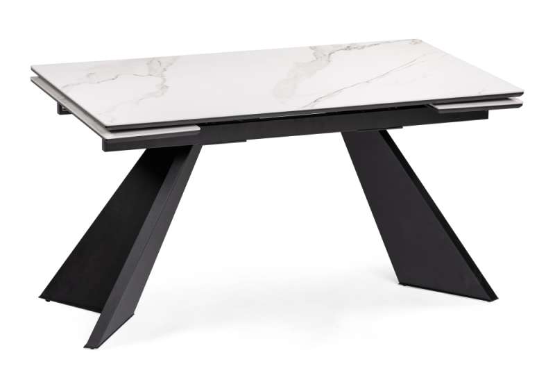 Керамический стол Ливи 140(200)х80х78 белый мрамор / черный (80x78)