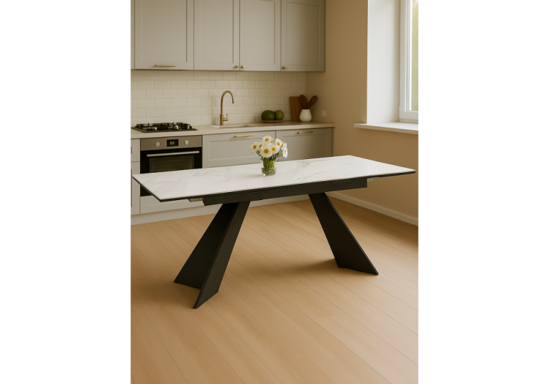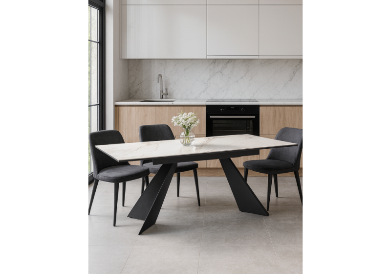 Керамический стол Ливи 140(200)х80х78 белый мрамор / черный (80x78).