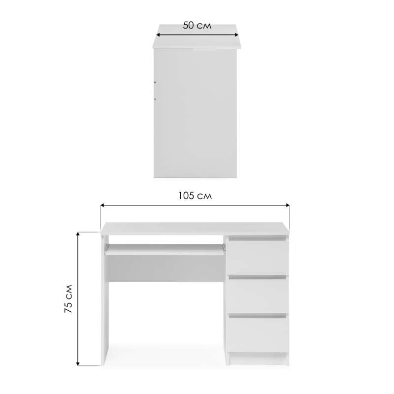 Компьютерный стол Мадера СМП 105х50х75 правый белый (50x75)