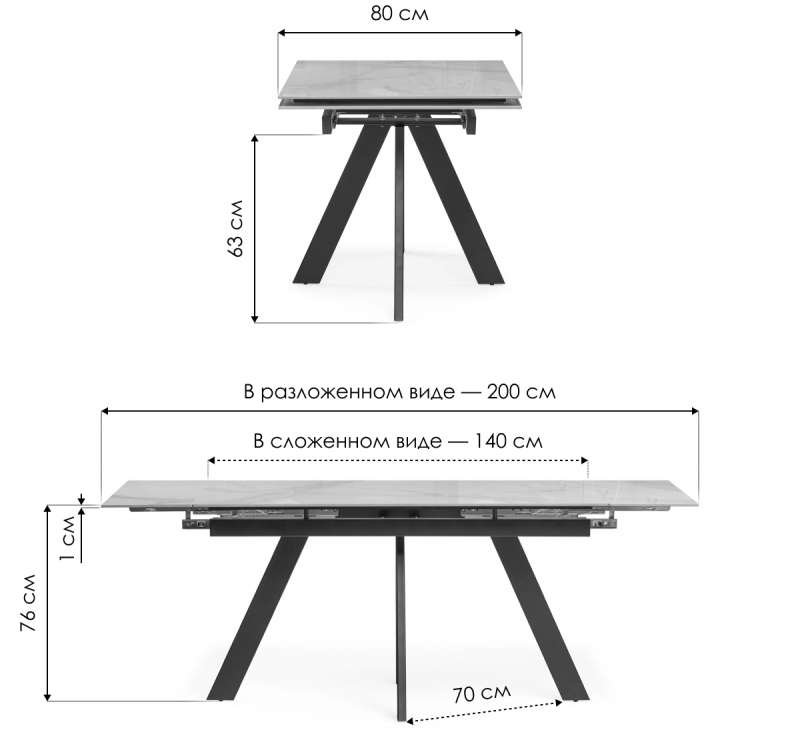 Керамический стол Невис 140(200)х80х76 оробико / черный (80x76).