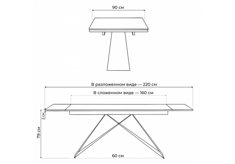 Расстояние между ножками: 60 см. Толщина столешницы: 2 см.