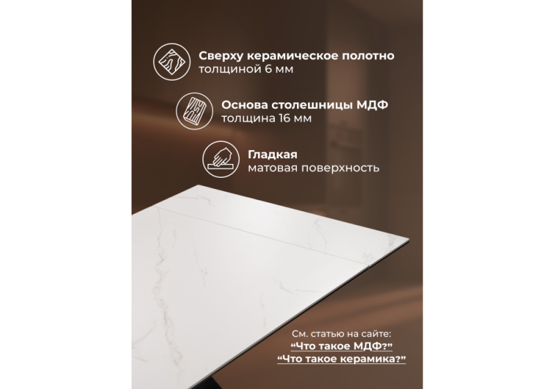 Керамический стол Ноттингем 160(220)х90х79 белый мрамор / черный (90x79).