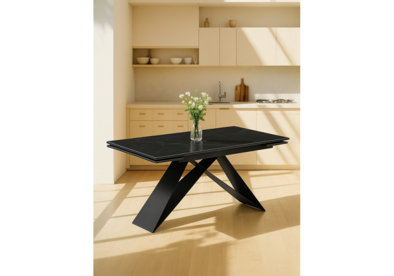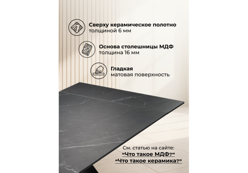Керамический стол Ноттингем 160(220)х90х79 черный мрамор / черный (90x79).