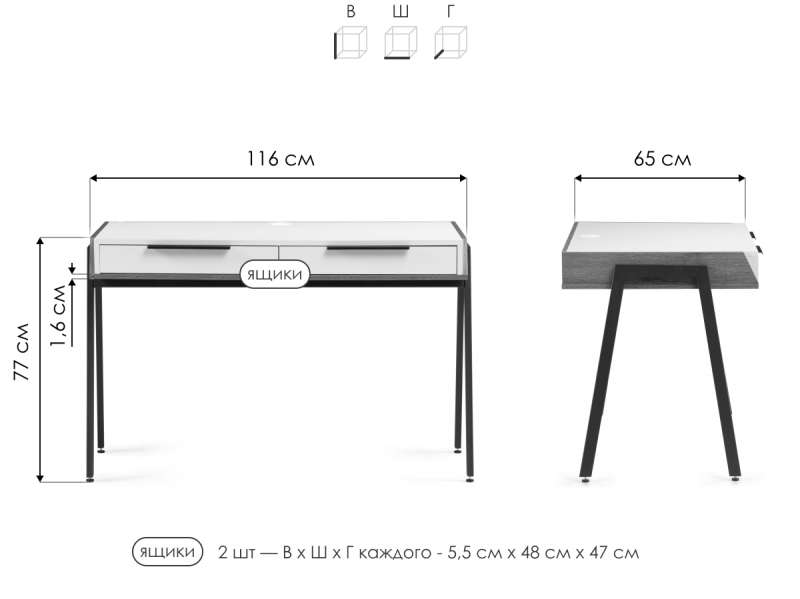 Толщина столешницы: 1,6 см.