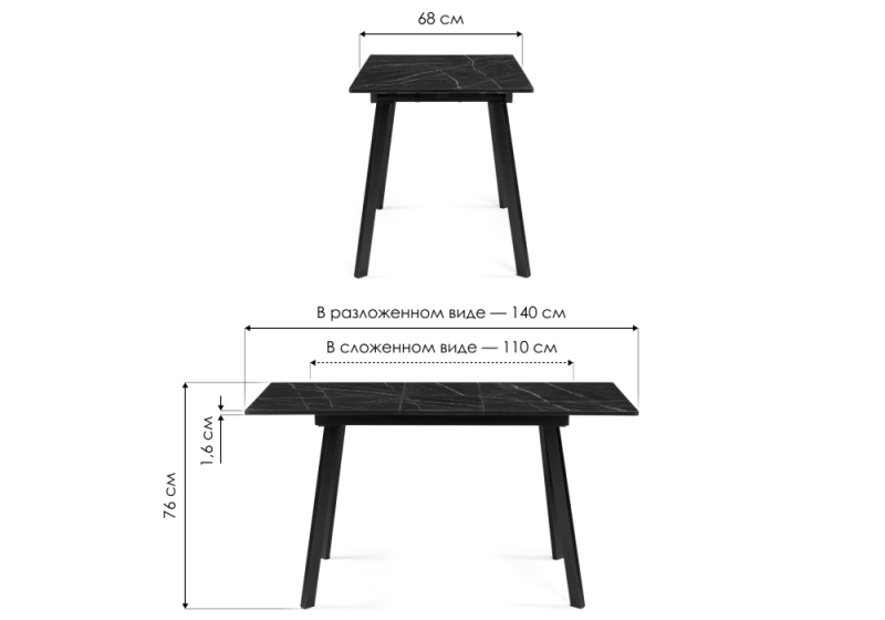 Стол стеклянный Агни 110 королевский мрамор / черный матовый (68x75)