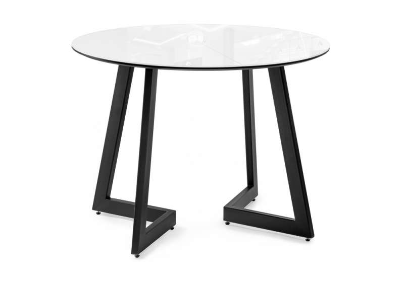 Стол стеклянный Алингсос 100(140)х100х76 белый / белая шагрень / черный кварц (100x76).