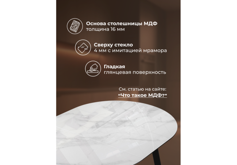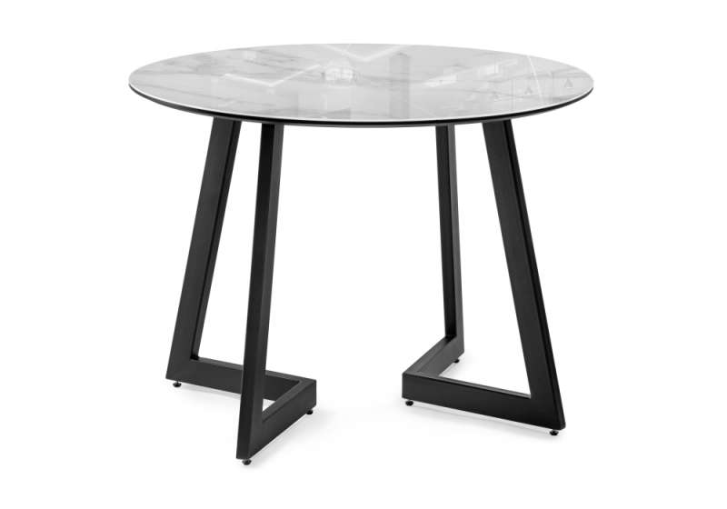 Стол стеклянный Алингсос 100(140)х100х76 белый мрамор / черный (100x76).